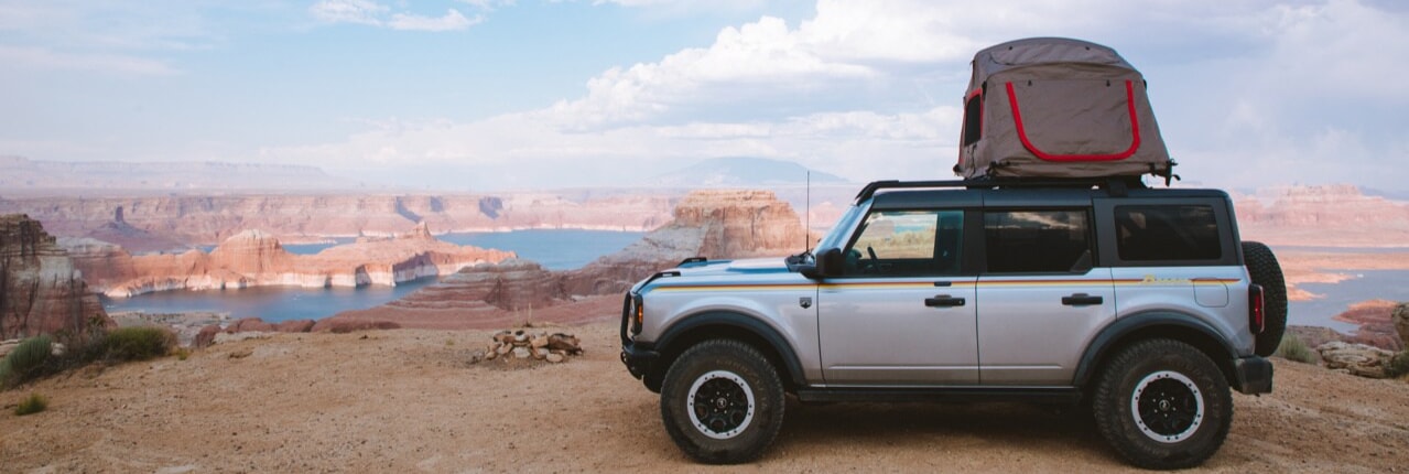 The Bronco's interior features plenty of technology to enhance your drive. All models have the latest SYNC® 4 infotainment system with a 12-inch touchscreen display, Apple CarPlay®, and Android Auto™. Available in higher trims, the Bronco offers a 10-speaker Bang & Olufsen® sound system, 360-degree camera, and Ford Co-Pilot360™ driver technologies like adaptive cruise control. With up to 8.65 inches of maximum front headroom, the Bronco provides ample space for driver and passenger comfort.