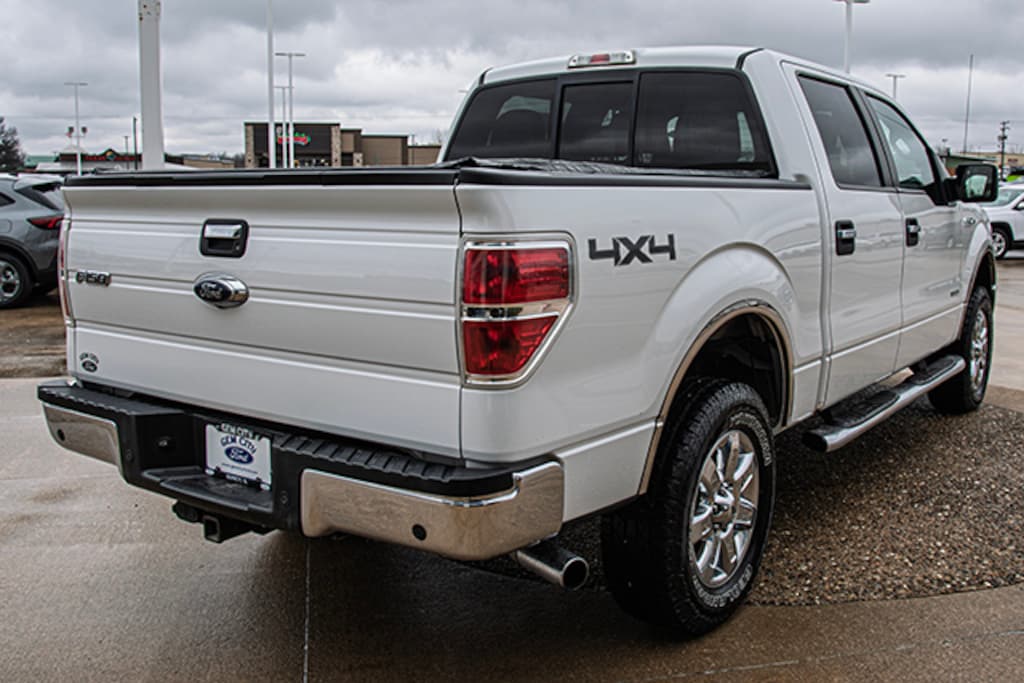 Local Trade, Oxford White 2014 Ford F-150 XLT 302A 4WD 6-Speed Automatic Electronic 3.5L V6, 4WD, 18" Chrome-Clad Aluminum Wheels, 4 Speakers, 4-Wheel Disc Brakes, 4.2" LCD Productivity Screen in Instrument Cluster, 5" Chrome Running Boards, 6-Way Power Driver Seat, ABS brakes, Air Conditioning, Alloy wheels, AM/FM radio, Auxiliary Transmission Oil Cooler, Bumpers: chrome, CD player, Center Console, Chrome Door Handles w/Black Bezels, Chrome Exhaust Tip, Compass, Delay-off headlights, Driver door bin, Driver vanity mirror, Dual front impact airbags, Dual front side impact airbags, Electronic Locking w/3.55 Axle Ratio, Electronic Stability Control, Equipment Group 302A Luxury, Front anti-roll bar, Front Center Armrest w/Storage, Front fog lights, Front License Plate Bracket, Front reading lights, Front wheel independent suspension, Fully automatic headlights, GVWR: 7,200 lbs Payload Package, Heated Power Side Mirrors, High-Intensity Discharge Headlamps, Illuminated entry, Leather 40/Console/40 Front Seats, Leather-Wrapped Steering Wheel, Low tire pressure warning, Occupant sensing airbag, Outside temperature display, Overhead airbag, Overhead console, Panic alarm, Passenger door bin, Passenger vanity mirror, Power Adjustable Pedals, Power door mirrors, Power steering, Power windows, Power-Sliding Rear Window w/Defrost & Privacy Tint, Radio data system, Radio: AM/FM Stereo/Single-CD Player w/Clock, Rear reading lights, Rear step bumper, Rear Window Defroster, Rear-View Camera, Remote keyless entry, Reverse Sensing System, Security system, SelectShift Transmission, Self-Dimming Rear-View Mirror, SiriusXM Satellite Radio, Speed control, Speed-sensing steering, Split folding rear seat, Steering wheel mounted audio controls, SYNC MyFord, SYNC Voice Activated Communication & Entertainment, Tachometer, Tailgate Step, Tilt steering wheel, Traction control, Trailer Brake Controller, Trailer Tow Package, Upgraded Radiator, Variably intermittent wipers, XLT Chrome Package, XLT Convenience Package, XLT Plus Package, 4WD.