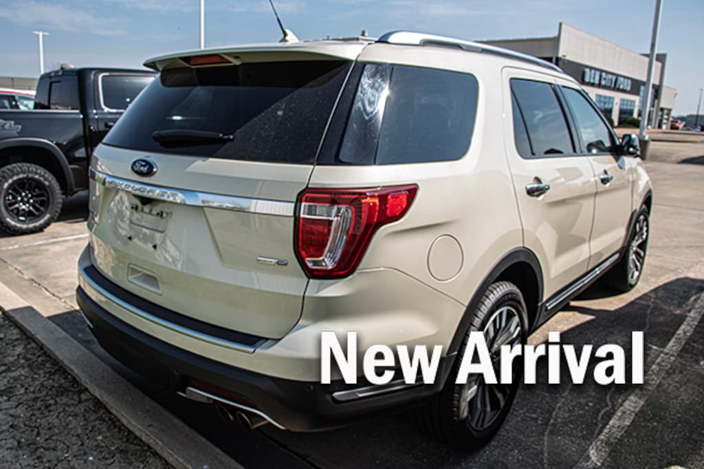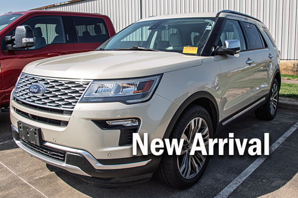 Local Trade, Platinum Dune Metallic Tri-Coat 2018 Ford Explorer Platinum 600A 4WD 6-Speed Automatic with Select-Shift 3.5L V6, 4WD, 12 Speakers, 2nd Row Bucket Seats w/Power-Assist Fold, 3.16 Axle Ratio, 3rd row seats: split-bench, 4-Wheel Disc Brakes, ABS brakes, Adjustable pedals, Air Conditioning, Alloy wheels, AM/FM radio: SiriusXM, AppLink/Apple CarPlay and Android Auto, Auto High-beam Headlights, Auto tilt-away steering wheel, Auto-dimming door mirrors, Auto-dimming Rear-View mirror, Automatic temperature control, Brake assist, Bumpers: body-color, CD player, Compass, Delay-off headlights, Driver door bin, Driver vanity mirror, Dual front impact airbags, Dual front side impact airbags, Electronic Stability Control, Emergency communication system: SYNC 3 911 Assist, Equipment Group 600A, Exterior Parking Camera Rear, Four wheel independent suspension, Front anti-roll bar, Front Bucket Seats, Front Center Armrest, Front dual zone A/C, Front fog lights, Front reading lights, Fully automatic headlights, Garage door transmitter, Genuine wood dashboard insert, Genuine wood door panel insert, Heated door mirrors, Heated front seats, Heated rear seats, Heated steering wheel, Illuminated entry, Knee airbag, Lane Departure Warning System, Leather steering wheel, Low tire pressure warning, Memory seat, Navigation System, Nirvana Multi Contour Leather Cooled Bucket Seats, Occupant sensing airbag, Outside temperature display, Overhead airbag, Overhead console, Panic alarm, Passenger door bin, Passenger vanity mirror, Pedal memory, Power door mirrors, Power driver seat, Power Liftgate, Power moonroof, Power passenger seat, Power steering, Power windows, Premium audio system: Sony, Radio data system, Radio: Premium Sound from Sony, Rain sensing wipers, Rear air conditioning, Rear anti-roll bar, Rear reading lights, Rear seat center armrest, Rear window defroster, Rear window wiper, Remote keyless entry, Roof rack: rails only, Security system, Speed control, Speed-sensing steering, Speed-Sensitive Wipers, Split folding rear seat, Spoiler, Steering wheel memory, Steering wheel mounted audio controls, SYNC 3 Communications & Entertainment System, Tachometer, Telescoping steering wheel, Tilt steering wheel, Traction control, Trip computer, Turn signal indicator mirrors, Variably intermittent wipers, Ventilated front seats, Wheels: 20" Bright Machined Face Aluminum, 4WD.