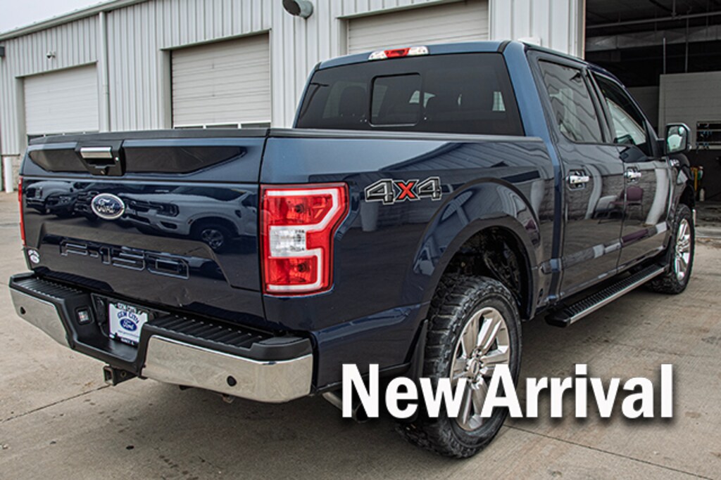 Local Trade, Blue Jeans Metallic 2019 Ford F-150 XLT 302A 4WD 10-Speed Automatic 5.0L V8, 4WD, 110V/400W Outlet, 2-Bar Style Grille w/Chrome 2 Minor Bars, 4-Wheel Disc Brakes, 6 Speakers, 8-Way Power Driver Seat, ABS brakes, Air Conditioning, Alloy wheels, AM/FM radio, AppLink/Apple CarPlay and Android Auto, Auto High-beam Headlights, Auto-Dimming Rear-View Mirror, Brake assist, Bumpers: chrome, Chrome Door & Tailgate Handles w/Body-Color Bezel, Chrome Step Bars, Cloth 40/Console/40 Front Seats, Compass, Delay-off headlights, Driver door bin, Driver vanity mirror, Dual front impact airbags, Dual front side impact airbags, Electronic Locking w/3.55 Axle Ratio, Electronic Stability Control, Emergency communication system: SYNC 3 911 Assist, Equipment Group 302A Luxury, Extended Range 36 Gallon Fuel Tank, Exterior Parking Camera Rear, Front anti-roll bar, Front Center Armrest w/Storage, Front fog lights, Front License Plate Bracket, Front wheel independent suspension, Fully automatic headlights, GVWR: 7,000 lbs Payload Package, Heated Front Seats, Illuminated entry, Integrated Trailer Brake Controller, LED Box Lighting, Low tire pressure warning, Occupant sensing airbag, Outside temperature display, Overhead airbag, Panic alarm, Passenger door bin, Passenger vanity mirror, Power door mirrors, Power Glass Heated Sideview Mirrors, Power steering, Power windows, Power-Sliding Rear Window, Pro Trailer Backup Assist, Radio data system, Radio: AM/FM Stereo w/6 Speakers, Rear step bumper, Rear Window Defroster, Remote keyless entry, Remote Start System, Reverse Sensing System, Security system, Single-Tip Chrome Exhaust, SiriusXM Radio, Speed control, Speed-sensing steering, Split folding rear seat, Steering wheel mounted audio controls, SYNC 3, Tachometer, Telescoping steering wheel, Tilt steering wheel, Tough Bed Spray-In Bedliner, Traction control, Trailer Tow Package, Variably intermittent wipers, Voice-Activated Touchscreen Navigation, Voltmeter, Wheels: 20" Chrome-Like PVD, XLT Chrome Appearance Package, XLT Power Equipment Group, 4WD.