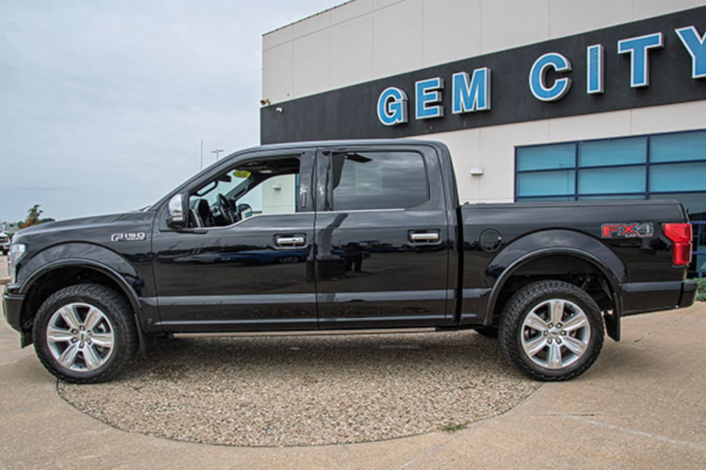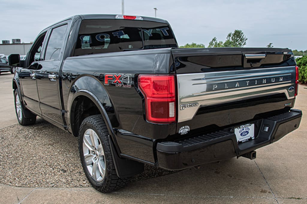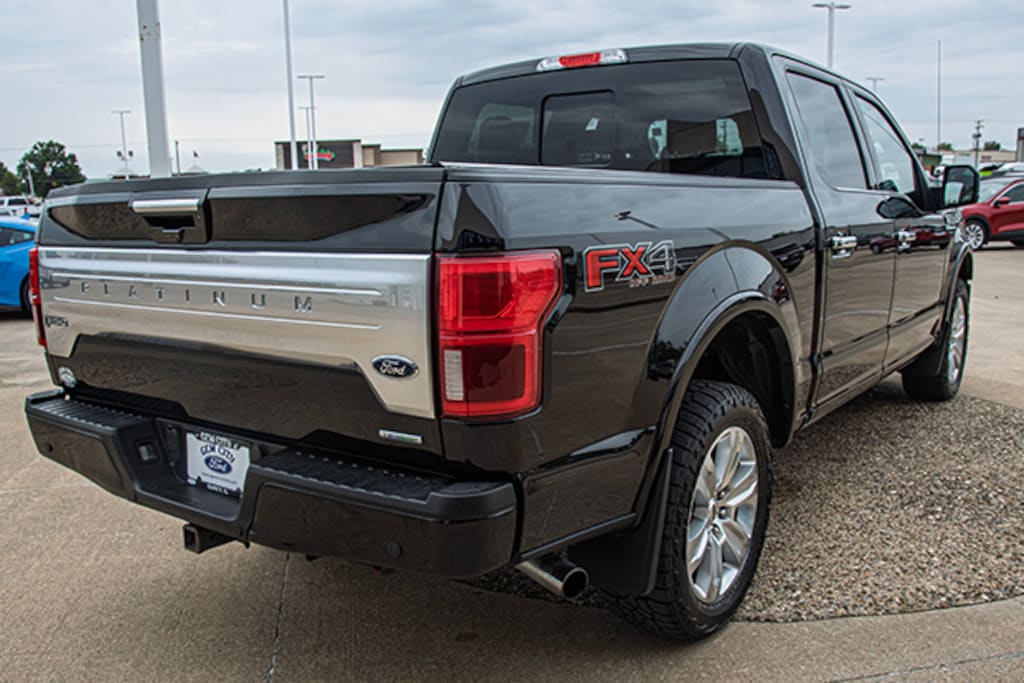 4WD, 10 Speakers, 20" Polished Aluminum Wheels, 360 Camera w/Split-View Display, 4x4 FX4 Off-Road Bodyside Decal, Active Park Assist, Adaptive Cruise Control, Class IV Trailer Hitch Receiver, Electronic Locking w/3.55 Axle Ratio, Engine Oil Cooler, Equipment Group 701A Luxury, Extended Range 36 Gallon Fuel Tank, Exterior Parking Camera Rear, Front fog lights, FX4 Off-Road Package, Heated front seats, Heated steering wheel, Hill Descent Control, Integrated Trailer Brake Controller, Max Trailer Tow Package, Off-Road Tuned Front Shock Absorbers, Power driver seat, Power passenger seat, Pro Trailer Backup Assist, Radio: B&O Sound System by Bang & Olufsen, Rear Parking Sensors, Remote keyless entry, SiriusXM Radio, SYNC 3, Tailgate Step w/Tailgate Lift Assist, Technology Package, Tray Style Floor Liner, Twin Panel Moonroof, Upgraded Front Stabilizer Bar, Ventilated front seats, Voice-Activated Touchscreen Navigation. Black 2020 Ford F-150 Platinum 4WD 10-Speed Automatic 3.5L V6 EcoBoost