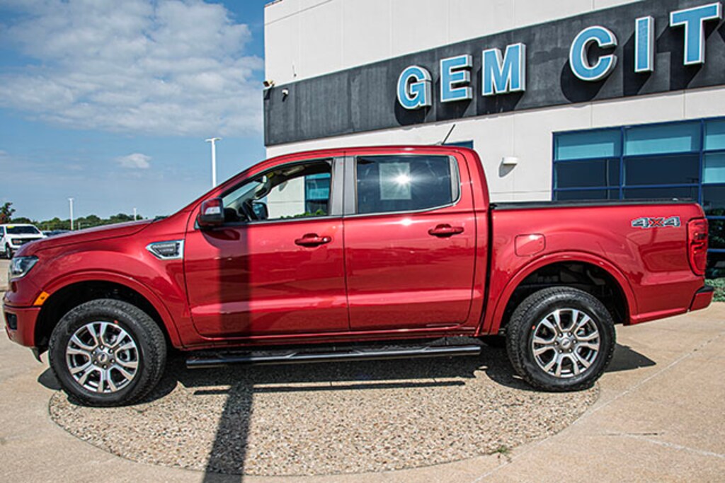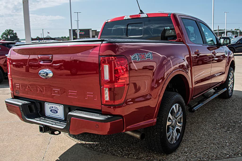 Local Trade, Rapid Red Metallic Tinted Clearcoat 2020 Ford Ranger Lariat 500A 4WD 10-Speed Automatic EcoBoost 2.3L I4 GTDi DOHC Turbocharged VCT,4WD, Class IV Trailer Hitch Receiver, Equipment Group 500A Base, Trailer Tow Package, 3.73 Axle Ratio, 4-Wheel Disc Brakes, 6 Speakers, ABS brakes, Air Conditioning, Alloy wheels, AM/FM radio: SiriusXM, AM/FM Stereo, Auto High-beam Headlights, Auto-dimming Rear-View mirror, Automatic temperature control, Brake assist, Bumpers: body-color, Compass, Delay-off headlights, Driver door bin, Driver vanity mirror, Dual front impact airbags, Dual front side impact airbags, Electronic Stability Control, Emergency communication system: SYNC 3 911 Assist, Exterior Parking Camera Rear, Front anti-roll bar, Front Bucket Seats, Front Center Armrest, Front dual zone A/C, Front fog lights, Front Heated Leather-Trimmed Bucket Seats, Front reading lights, Front wheel independent suspension, Fully automatic headlights, Garage door transmitter, Heated door mirrors, Heated front seats, Illuminated entry, Leather Shift Knob, Leather steering wheel, Low tire pressure warning, Occupant sensing airbag, Outside temperature display, Overhead airbag, Overhead console, Panic alarm, Passenger door bin, Passenger vanity mirror, Power door mirrors, Power driver seat, Power passenger seat, Power steering, Power windows, Rear reading lights, Rear seat center armrest, Rear step bumper, Rear window defroster, Remote keyless entry, Security system, SiriusXM Satellite Radio, Speed control, Speed-sensing steering, Steering wheel mounted audio controls, SYNC 3, Telescoping steering wheel, Tilt steering wheel, Traction control, Trip computer, Turn signal indicator mirrors, Variably intermittent wipers, Voltmeter, Wheels: 18" Machined Alum w/Stealth Gray Pockets, Spray-In Bed Liner, Soft Tonneau Cover, 4WD, Class IV Trailer Hitch Receiver, Equipment Group 500A Base, Trailer Tow Package.