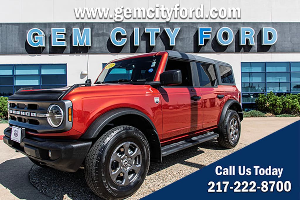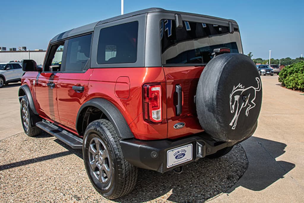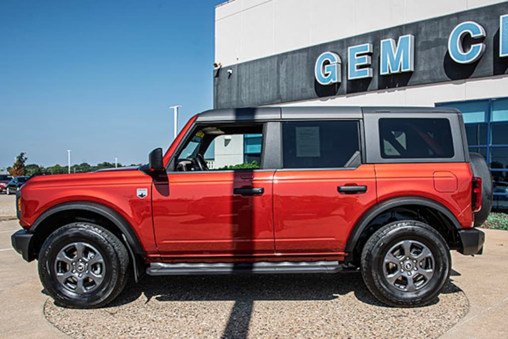 Local Trade, Hot Pepper Red Metallic Tinted Clearcoat 2022 Ford Bronco Big Bend 222A 4WD 10-Speed Automatic 2.3L EcoBoost I-4, 2-Door Intelligent Access w/Lock/Unlock, Ambient Footwell Lighting, Auto-Dimming Interior Rear-View Mirror, Connected Navigation, Dr & Pass Illuminated Sliding Visor Vanity Mirrors, Dual-Zone Electronic Automatic Temperature Control, Enhanced Voice Recognition, Equipment Group 222A Mid Package, Front Row Heated Seats, Hard Top Sound Deadening Headliner, Power Outlet - Back Side of Center Floor Console, Rear Parking Sensors, Remote Start System, Wheels: 17" Carbonized Gray-Painted Aluminum, 3.73 Axle Ratio, 4-Wheel Disc Brakes, 6 Speakers, ABS brakes, Air Conditioning, Alloy wheels, AM/FM radio: SiriusXM with 360L, AM/FM Stereo, Auto High-beam Headlights, Brake assist, Cloth Bucket Seats, Compass, Delay-off headlights, Driver door bin, Driver vanity mirror, Dual front impact airbags, Dual front side impact airbags, Electronic Stability Control, Emergency communication system: 911 Assist, Exterior Parking Camera Rear, Front & Rear Floor Liners, Front anti-roll bar, Front Bucket Seats, Front Center Armrest, Front fog lights, Front reading lights, Front wheel independent suspension, Fully automatic headlights, Heated door mirrors, Illuminated entry, Integrated roll-over protection, Leather Shift Knob, Low tire pressure warning, Occupant sensing airbag, Outside temperature display, Overhead airbag, Overhead console, Panic alarm, Passenger door bin, Passenger vanity mirror, Power door mirrors, Power steering, Power windows, Radio data system, Remote keyless entry, Security system, SiriusXM Radio w/360L, Speed control, Split folding rear seat, Steering wheel mounted audio controls, SYNC 4, Tachometer, Telescoping steering wheel, Tilt steering wheel, Traction control, Trip computer, Variably intermittent wipers, 2-Door Intelligent Access w/Lock/Unlock, Ambient Footwell Lighting, Auto-Dimming Interior Rear-View Mirror, Connected Navigation, Dr & Pass Illuminated Sliding Visor Vanity Mirrors, Dual-Zone Electronic Automatic Temperature Control, Enhanced Voice Recognition, Equipment Group 222A Mid Package, Front Row Heated Seats, Hard Top Sound Deadening Headliner, Power Outlet - Back Side of Center Floor Console, Rear Parking Sensors, Remote Start System, Wheels: 17" Carbonized Gray-Painted Aluminum.