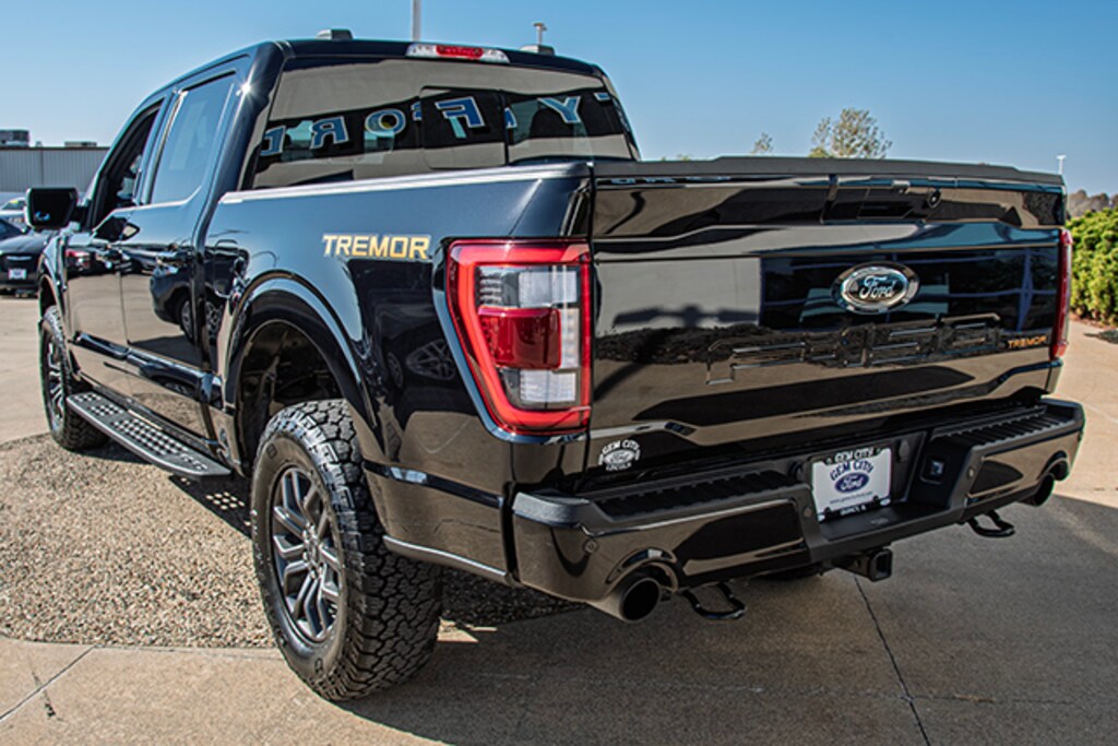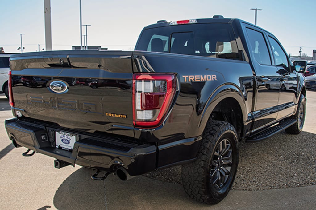 Local Trade, Agate Black Metallic 2023 Ford F-150 Tremor 402A 4WD 10-Speed Automatic 3.5L V6 EcoBoost 4WD, 12" Productivity Screen in Instrument Cluster, 2nd Row Heated Seats, 360 Degree Camera, Bed Utility Package, BoxLink, Class IV Trailer Hitch Receiver, Connected Built-In Navigation, Equipment Group 402A High, Evasive Steering Assist, Ford Co-Pilot360 Assist 2.0, Heated Steering Wheel, Integrated Trailer Brake Controller, Intelligent Adaptive Cruise Control w/Stop & Go, Intersection Assist, LED Box Lighting, LED Projector w/Dynamic Bending Headlamps, Power Glass Sideview Mirr w/Body-Color Skull Caps, Power Tailgate / Tailgate Step, Power Tilt/Telescoping Steering Column w/Memory, Power-Adjustable Pedals w/Memory, Power-Sliding Rear Window, Pro Trailer Backup Assist & Pro Trailer Hitch Assist, Radio: B&O Sound System by Bang & Olufsen, Rain-Sensing Wipers, Speed Sign Recognition, Tailgate Step w/Tailgate Work Surface, Trailer Tow Package, Unique Tremor Leather-Trimmed Bucket Seats, Universal Garage Door Opener, Wireless Charging Pad, Zone Lighting, 4-Wheel Disc Brakes, 6 Speakers, ABS brakes, Air Conditioning, Alloy wheels, AM/FM radio: SiriusXM with 360L, Auto High-beam Headlights, Auto Start-Stop Removal (DISC), Auto-dimming door mirrors, Automatic temperature control, Brake assist, Bumpers: body-color, Center High-Mounted Stop Lamp CHMSL Camera Removal, Compass, Delay-off headlights, Driver door bin, Dual front impact airbags, Dual front side impact airbags, Electronic Locking w/3.73 Axle Ratio, Electronic Stability Control, Emergency communication system: SYNC 4 911 Assist, Exterior Parking Camera Rear, Front anti-roll bar, Front Bucket Seats, Front Center Armrest, Front dual zone A/C, Front fog lights, Front reading lights, Front wheel independent suspension, Front-Axle w/Torsen Differential, Fully automatic headlights, GVWR: 7,050 lbs Payload Package, Heated door mirrors, Heated front seats, Illuminated entry, Inclination/Intrusion Sensor Removal, Interior Work Surface, Low tire pressure warning, Navigation system: Connected Navigation, Occupant sensing airbag, Outside temperature display, Overhead airbag, Overhead console, Panic alarm, Passenger door bin, Passenger vanity mirror, Power door mirrors, Power driver seat, Power passenger seat, Power steering, Power windows, Pro Power Onboard - 2KW, Radio data system, Radio: AM/FM SiriusXM w/360L, Radio: B&O Unleashed Sound System by Bang & Olufsen, Rear reading lights, Rear step bumper, Rear window defroster, Remote keyless entry, Security system, Speed control, Speed-sensing steering, Split folding rear seat, Steering Wheel Heat Removal (DISC), Steering wheel mounted audio controls, SYNC 4 w/Enhanced Voice Recognition, Tachometer, Telescoping steering wheel, Tilt steering wheel, Traction control, Trip computer, Turn signal indicator mirrors, Twin Panel Moonroof, Variably intermittent wipers, Voltmeter, Wheels: 18" Alloy w/Dark Matte Finish, Pro Power Onboard 2KW, 4WD, 12" Productivity Screen in Instrument Cluster, 2nd Row Heated Seats, 360 Degree Camera, Bed Utility Package, BoxLink, Class IV Trailer Hitch Receiver, Connected Built-In Navigation, Equipment Group 402A High, Evasive Steering Assist, Ford Co-Pilot360 Assist 2.0, Heated Steering Wheel, Integrated Trailer Brake Controller, Intelligent Adaptive Cruise Control w/Stop & Go, Intersection Assist, LED Box Lighting, LED Projector w/Dynamic Bending Headlamps, Power Glass Sideview Mirr w/Body-Color Skull Caps, Power Tailgate / Tailgate Step, Power Tilt/Telescoping Steering Column w/Memory, Power-Adjustable Pedals w/Memory, Power-Sliding Rear Window, Pro Trailer Backup Assist & Pro Trailer Hitch Assist, Radio: B&O Sound System by Bang & Olufsen, Rain-Sensing Wipers, Speed Sign Recognition, Tailgate Step w/Tailgate Work Surface, Trailer Tow Package, Unique Tremor Leather-Trimmed Bucket Seats, Universal Garage Door Opener, Wireless Charging Pad, Zone Lighting.