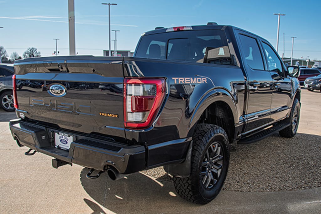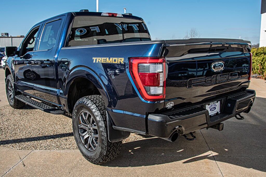 Local Trade, Antimatter Blue Metallic 2023 Ford F-150 Tremor 402A 4WD 10-Speed Automatic 3.5L V6 EcoBoost, 4WD, 2nd Row Heated Seats, 360 Degree Camera, 4-Wheel Disc Brakes, 6 Speakers, ABS brakes, Air Conditioning, Alloy wheels, AM/FM radio: SiriusXM with 360L, Auto High-beam Headlights, Auto Start-Stop Removal (DISC), Auto-dimming door mirrors, Automatic temperature control, Bed Utility Package, BoxLink, Brake assist, Bumpers: body-color, Class IV Trailer Hitch Receiver, Compass, Connected Built-In Navigation, Delay-off headlights, Driver door bin, Dual front impact airbags, Dual front side impact airbags, Electronic Locking w/3.73 Axle Ratio, Electronic Stability Control, Emergency communication system: SYNC 4 911 Assist, Equipment Group 402A High, Evasive Steering Assist, Exterior Parking Camera Rear, Ford Co-Pilot360 Assist 2.0, Front anti-roll bar, Front Bucket Seats, Front Center Armrest, Front dual zone A/C, Front fog lights, Front reading lights, Front wheel independent suspension, Fully automatic headlights, GVWR: 7,000 lbs Payload Package, Heated door mirrors, Heated front seats, Illuminated entry, Inclination/Intrusion Sensor Removal, Integrated Trailer Brake Controller, Interior Work Surface, LED Box Lighting, Low tire pressure warning, Navigation system: Connected Navigation, Occupant sensing airbag, Onboard 400W Outlet, Outside temperature display, Overhead airbag, Overhead console, Panic alarm, Passenger door bin, Passenger vanity mirror, Power door mirrors, Power driver seat, Power passenger seat, Power steering, Power Tailgate / Tailgate Step, Power Tilt/Telescoping Steering Column w/Memory, Power windows, Power-Sliding Rear Window, Radio data system, Radio: AM/FM SiriusXM w/360L, Radio: B&O Sound System by Bang & Olufsen, Radio: B&O Unleashed Sound System by Bang & Olufsen, Rain-Sensing Wipers, Rear reading lights, Rear step bumper, Rear window defroster, Remote keyless entry, Security system, Speed control, Speed-sensing steering, Split folding rear seat, Steering Wheel Heat Removal (DISC), Steering wheel mounted audio controls, SYNC 4 w/Enhanced Voice Recognition, Tachometer, Tailgate Step w/Tailgate Work Surface, Telescoping steering wheel, Tilt steering wheel, Traction control, Trailer Tow Package, Trip computer, Turn signal indicator mirrors, Twin Panel Moonroof, Unique Sport Cloth 40/Console/40 Power Front Seat, Unique Tremor Leather-Trimmed Bucket Seats, Variably intermittent wipers, Voltmeter, Wheels: 18" Alloy w/Dark Matte Finish, Wireless Charging Pad, Zone Lighting, 4WD. Antimatter Blue Metallic 2023 Ford F-150 Tremor 402A 4WD 10-Speed Automatic 3.5L V6 EcoBoost