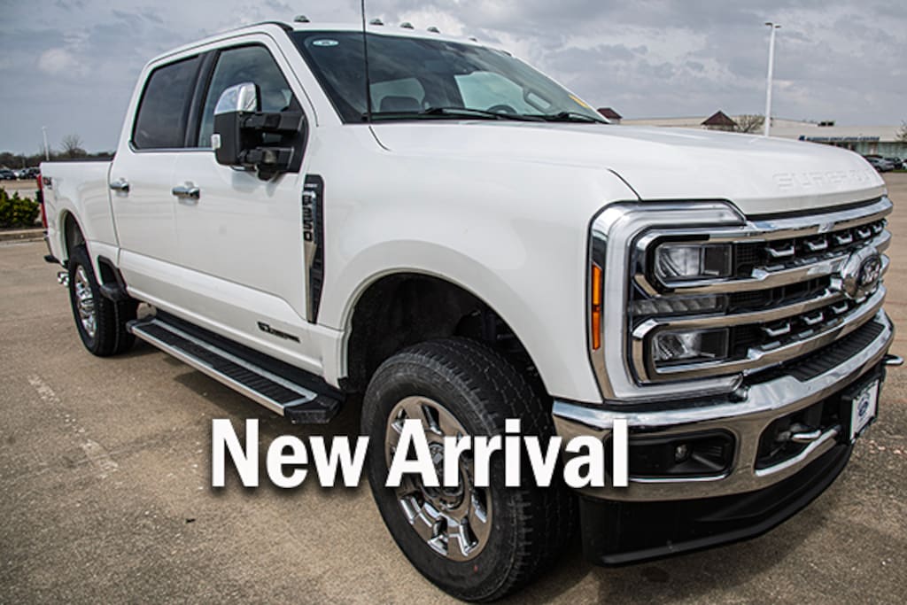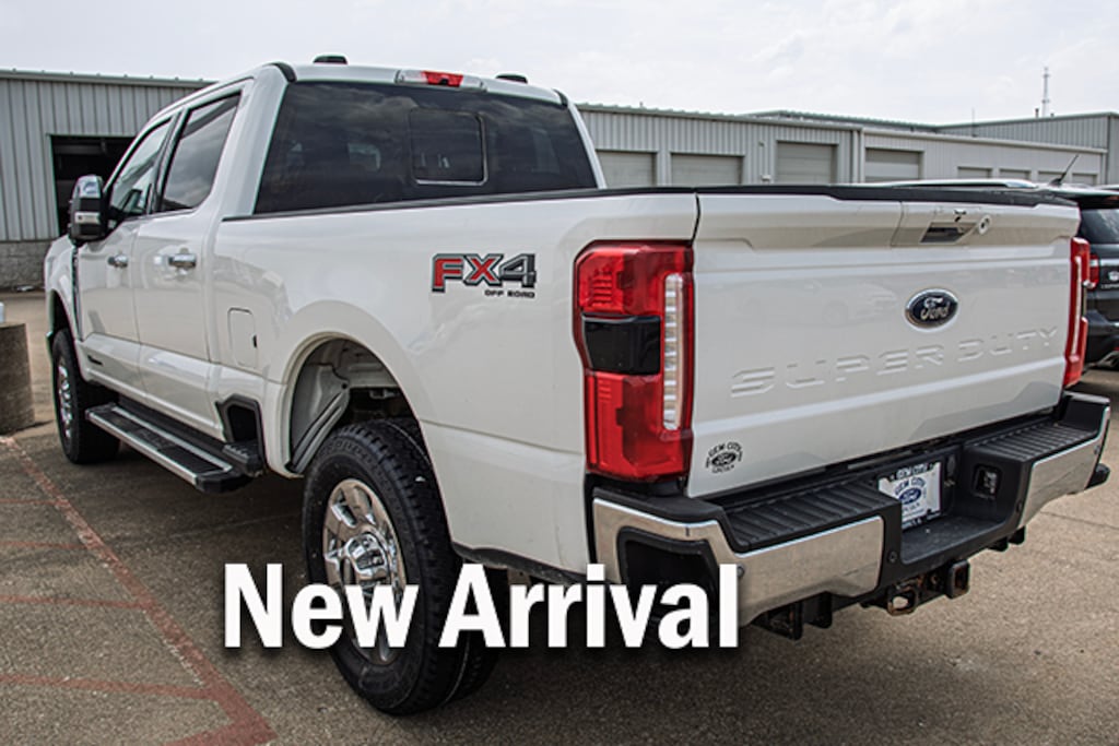Local Trade, Star White Metallic Tri-Coat 2023 Ford F-350SD Lariat 618A 4WD 10-Speed Automatic Power Stroke 6.7L V8 DI 32V OHV Turbodiesel, 4WD, 360-Degree Camera Package w/o CHMSL Camera, 4-Wheel Disc Brakes, 410 Amp Dual Alternators, 6" Angular Bright Anodized Step Bars, 8 Speakers, ABS brakes, Adjustable pedals, Air Conditioning, All-Weather Floor Mats, Alloy wheels, AM/FM radio: SiriusXM with 360L, Auto High-beam Headlights, Auto tilt-away steering wheel, Auto-dimming Rear-View mirror, Automatic temperature control, Brake assist, Bumpers: chrome, Chrome Door Handles, Chrome Exhaust Tip, Chrome Package, Compass, Delay-off headlights, Driver door bin, Driver vanity mirror, Dual 68 AH/65 AGM Batteries, Dual front impact airbags, Dual front side impact airbags, Electronic Stability Control, Electronic-Locking w/3.31 Axle Ratio, Emergency communication system: SYNC 4 911 Assist, Engine Block Heater, Exterior Parking Camera Rear, Flow-Through Console, Front anti-roll bar, Front Bucket Seats, Front Center Armrest, Front dual zone A/C, Front fog lights, Front Leather-Trimmed 40/Console/40 Seats, Front reading lights, Fully automatic headlights, FX4 Off-Road Package, Garage door transmitter, Heated door mirrors, Heated front seats, Heated rear seats, Heated steering wheel, Hill Descent Control, Illuminated entry, Leather steering wheel, LED Roof Clearance Lights, Low tire pressure warning, Memory seat, Navigation system: Connected Navigation, Off-Road Specifically Tuned Shock Absorbers, Order Code 618A, Outside temperature display, Overhead airbag, Overhead console, Panic alarm, Passenger door bin, Passenger vanity mirror, Pedal memory, Power door mirrors, Power driver seat, Power passenger seat, Power steering, Power windows, Radio: B&O Sound System by Bang & Olufsen, Rain sensing wipers, Rapid-Heat Supplemental Cab Heater, Rear reading lights, Rear seat center armrest, Rear step bumper, Rear window defroster, Remote keyless entry, Security system, SiriusXM Radio w/360L, Speed control, Split folding rear seat, Steering wheel memory, Steering wheel mounted audio controls, SYNC 4 w/Enhanced Voice Recognition, Tachometer, Telescoping steering wheel, Tilt steering wheel, Tough Bed Spray-In Bedliner, Traction control, Trip computer, Turn signal indicator mirrors, Unique Chrome Mirror Caps, Unique FX4 Off-Road Box Decal, Upfitter Switches (6), Variably intermittent wipers, Ventilated front seats, Wheels: 20" Chrome PVD Aluminum, 4WD.
