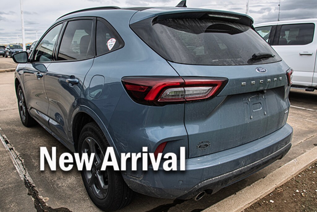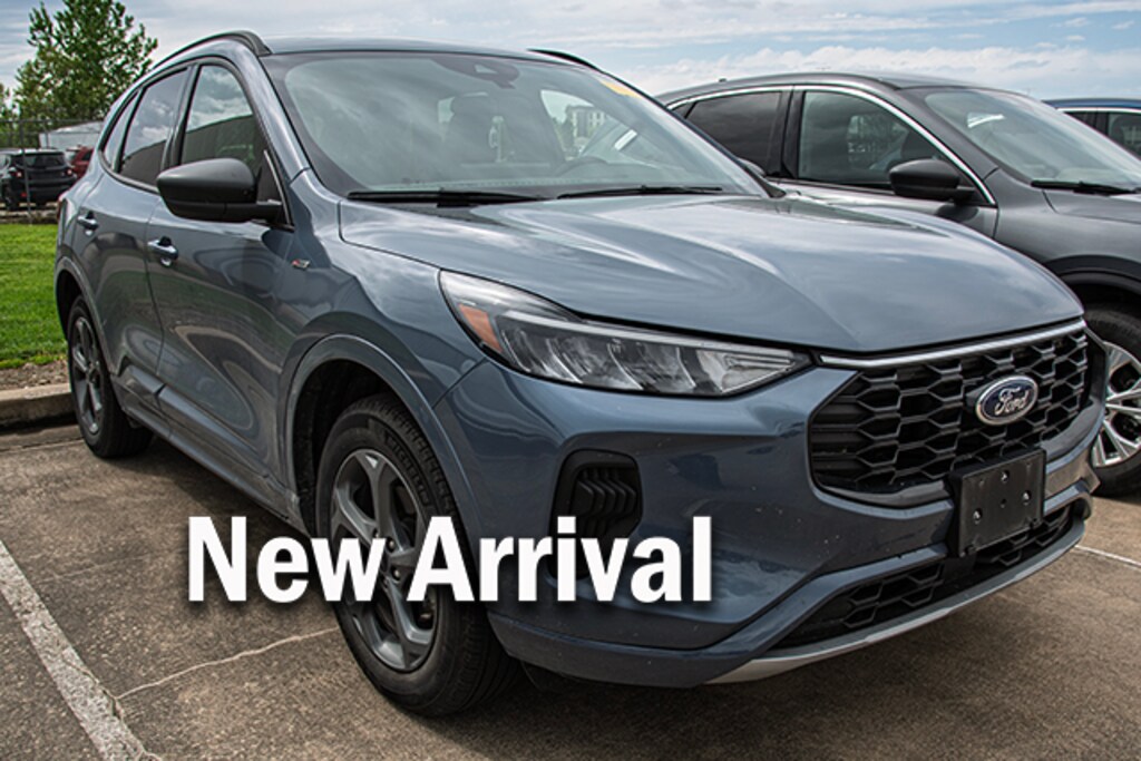 Local Trade, Vapor Blue Metallic 2024 Ford Escape ST-Line 300A AWD 8-Speed Automatic 1.5L EcoBoost, AWD, 3.81 Axle Ratio, 4-Wheel Disc Brakes, 6 Speakers, ABS brakes, Adaptive Cruise Control w/Stop-and-Go, Air Conditioning, Alloy wheels, AM/FM radio: SiriusXM, AM/FM Stereo, Auto High-beam Headlights, Automatic temperature control, Brake assist, Bumpers: body-color, Cold Weather Package, Compass, Connected Navigation, Delay-off headlights, Driver door bin, Driver vanity mirror, Dual front impact airbags, Dual front side impact airbags, Electronic Stability Control, Emergency communication system: SYNC 4 911 Assist, Equipment Group 300A, Exterior Parking Camera Rear, Ford Co-Pilot360 Assist+, FordPass Connect, Four wheel independent suspension, Front anti-roll bar, Front Bucket Seats, Front Center Armrest, Front dual zone A/C, Front License Plate Bracket, Front reading lights, Fully automatic headlights, Heated Front Row Seats, Heated Sideview Mirrors, Heated Steering Wheel, Illuminated entry, Knee airbag, Low tire pressure warning, Occupant sensing airbag, Outside temperature display, Overhead airbag, Overhead console, Panic alarm, Passenger door bin, Passenger vanity mirror, Power door mirrors, Power driver seat, Power Liftgate, Power steering, Power windows, Radio data system, Rear anti-roll bar, Rear Parking Sensor, Rear reading lights, Rear seat center armrest, Rear window defroster, Rear window wiper, Rear-View Camera, Remote keyless entry, Remote Starter System, Roof rack: rails only, Speed control, Speed Sign Recognition, Speed-sensing steering, Speed-Sensitive Wipers, Split folding rear seat, Spoiler, Sport steering wheel, Steering wheel mounted audio controls, SYNC 4, SYNC 4 w/Enhanced Voice Recognition, Tachometer, Tech Pack #1, Telescoping steering wheel, Tilt steering wheel, Traction control, Trip computer, Variably intermittent wipers, Vinyl/Cloth Front Sport Contour Bucket Seats, Wheels: 18" Rock Metallic Painted Aluminum, AWD.
