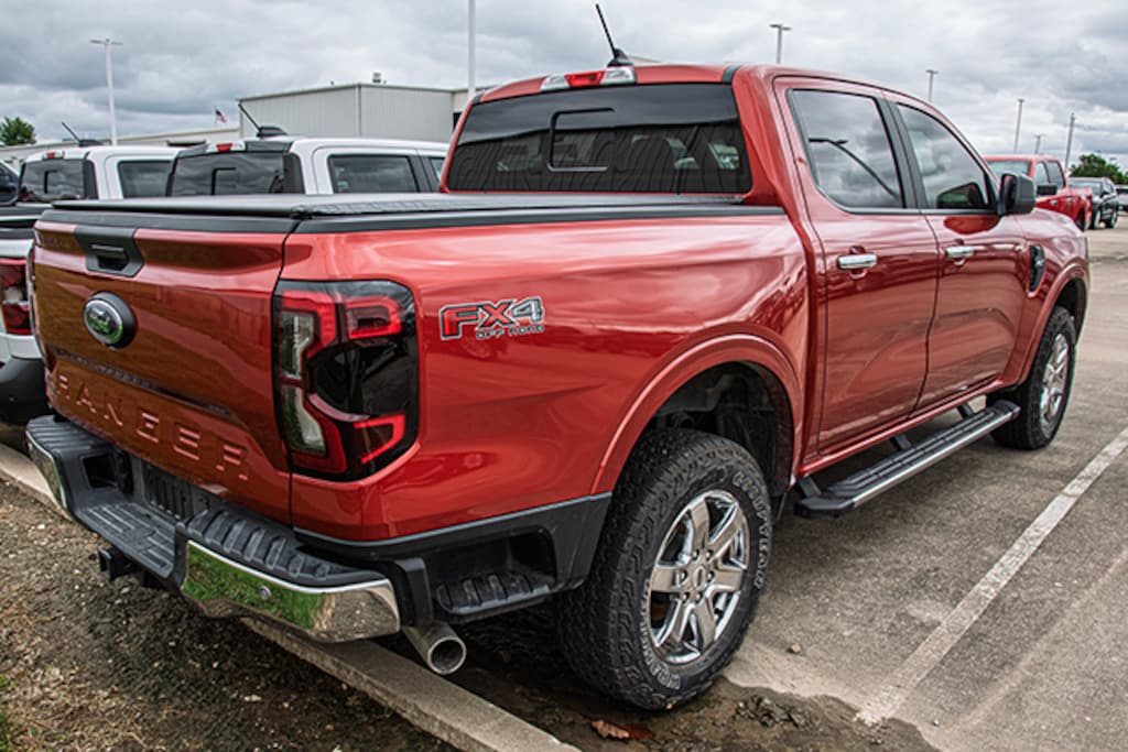 Local Trade, Hot Pepper Red Metallic Tinted Clearcoat 2024 Ford Ranger XLT 300A 4WD 10-Speed Automatic 2.7L EcoBoost V6, 4WD, 3.73 Axle Ratio, 4-Wheel Disc Brakes, 6 Speakers, ABS brakes, Air Conditioning, Alloy wheels, AM/FM radio: SiriusXM, AM/FM Stereo, Auto High-beam Headlights, Auto-dimming Rear-View mirror, Brake assist, Chrome Appearance Package, Chrome Center Bar & Grille Surround, Chrome Door Handles, Chrome Exhaust Tip, Chrome Fog Lamp Bezel, Chrome Rear Bumper, Chrome Running Boards, Chrome Tow Hooks, Class IV Trailer Hitch Receiver, Compass, Delay-off headlights, Driver door bin, Driver vanity mirror, Dual front impact airbags, Dual front side impact airbags, Electronic Stability Control, Electronic-Locking Rear Differential, Emergency communication system: SYNC 4 911 Assist, Equipment Group 300A Standard, Front anti-roll bar, Front Bucket Seats, Front Center Armrest, Front fog lights, Front License Plate Bracket, Front reading lights, Front wheel independent suspension, Fully automatic headlights, FX4 Off-Road Box Decal, FX4 Off-Road Package, FX4 Selectable Drive Modes, Illuminated entry, Integrated Box Side Step, Leather Shift Knob, Low tire pressure warning, Navigation system: Connected Navigation, Occupant sensing airbag, Off-Road Screen in Center Stack, Off-Road Tuned Shocks, Outside temperature display, Overhead airbag, Overhead console, Painted Body-Color Wheel Lip Molding, Panic alarm, Passenger door bin, Passenger vanity mirror, Power door mirrors, Power steering, Power windows, Premium Cloth Front Bucket Seats, Rear reading lights, Rear seat center armrest, Rear step bumper, Rear window defroster, Remote keyless entry, Security system, SiriusXM Satellite Radio, Speed control, Speed-sensing steering, Steering wheel mounted audio controls, SYNC 4A w/Connected Navigation, Telescoping steering wheel, Tilt steering wheel, Traction control, Trailer Tow Package, Trip computer, Variably intermittent wipers, Voltmeter, Wheels: 17" Gray-Painted Aluminum, Wheels: 18" Chrome-Like PVD, 4WD.