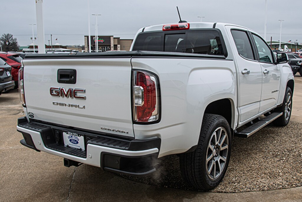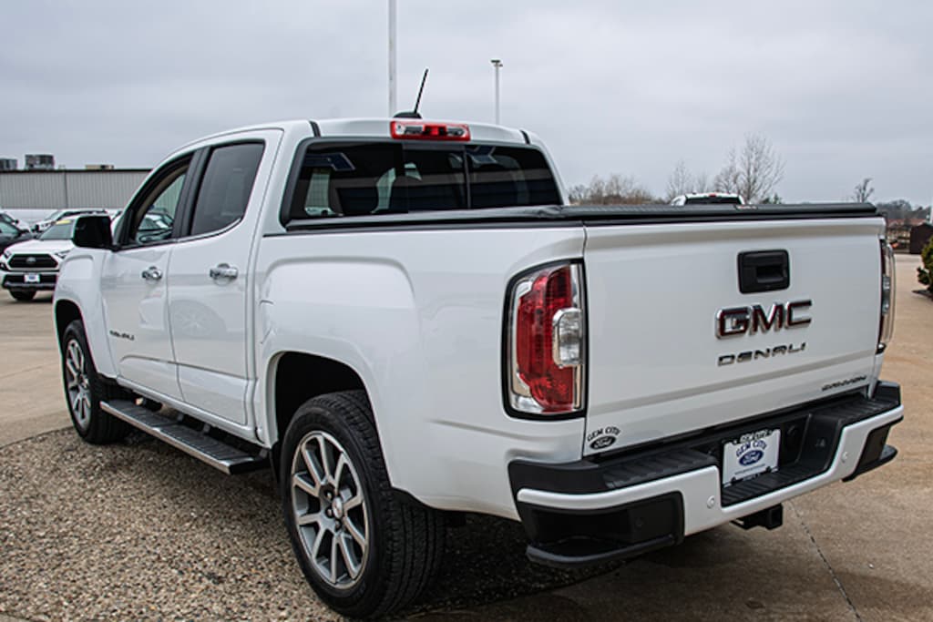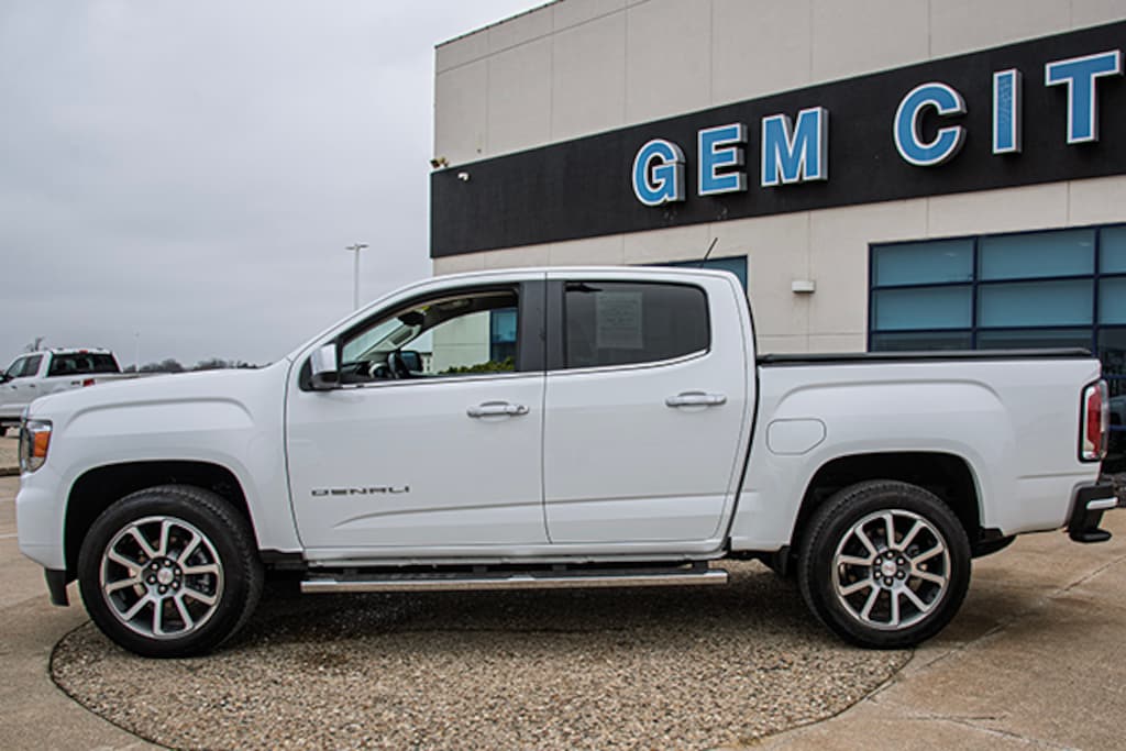 Local Trade, Summit White 2021 GMC Canyon Denali 4WD 8-Speed Automatic V6, 4WD, 2 USB Data Ports, 3.42 Rear Axle Ratio, 4-Way Power Front Passenger Seat Adjuster, 4-Wheel Disc Brakes, 5" Rectangular Chrome Assist Steps, 7 Speakers, ABS brakes, Air Conditioning, Alloy wheels, AM/FM radio: SiriusXM with 360L, Apple CarPlay/Android Auto, Auto-dimming Rear-View mirror, Automatic temperature control, Black Spray-On Bedliner w/GMC Logo, Bose Premium 7-Speaker Audio System Feature, Bumpers: body-color, Compass, Delay-off headlights, Driver 6-Way Power Seat Adjuster, Driver Alert Package, Driver door bin, Driver vanity mirror, Dual front impact airbags, Dual front side impact airbags, Electronic Stability Control, Exterior Parking Camera Rear, Forward Collision Alert, Front anti-roll bar, Front Bucket Seats, Front Center Armrest, Front fog lights, Front License Plate Kit, Front reading lights, Front wheel independent suspension, Fully automatic headlights, Genuine wood console insert, Genuine wood door panel insert, HD Radio, Heated door mirrors, Heated Driver & Front Passenger Seats, Heated front seats, Heated Steering Wheel, Heated steering wheel, Hitch Guidance, Illuminated entry, Lane Departure Warning System, Low tire pressure warning, Navigation System, Occupant sensing airbag, Outside temperature display, Overhead airbag, Overhead console, Panic alarm, Passenger door bin, Passenger vanity mirror, Perforated Leather-Appointed Seat Trim, Polished Exhaust Tip, Power door mirrors, Power Driver Lumbar Control Seat Adjuster, Power driver seat, Power Passenger Lumbar Control Seat Adjuster, Power passenger seat, Power steering, Power windows, Preferred Equipment Group 4SD, Premium audio system: GMC Infotainment System, Radio data system, Radio: AM/FM w/8" Diagonal Multi-Touch Display Nav, Rear reading lights, Rear seat center armrest, Rear step bumper, Rear window defroster, Remote keyless entry, Security system, SiriusXM Radio, Speed control, Speed-sensing steering, Steering wheel mounted audio controls, Tachometer, Telescoping steering wheel, Tilt steering wheel, Tow/Haul Mode, Traction control, Trailering Package, Trip computer, Ultrasonic Rear Parking Assist, Variably intermittent wipers, Ventilated Driver Seat, Ventilated Front Passenger Seat, Ventilated front seats, Wheels: 20" x 8.5" Diamond Cut Machined Aluminum, 4WD.