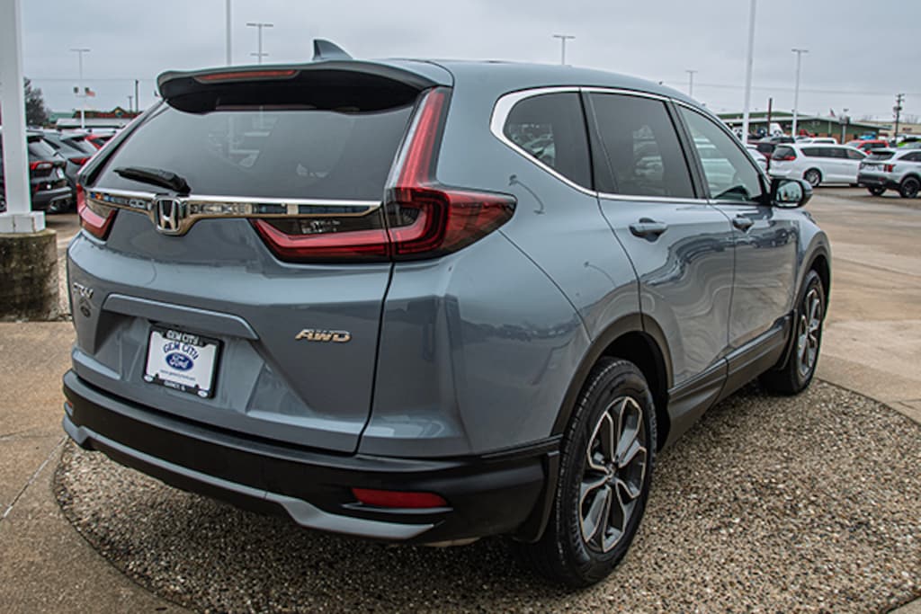Local Trade, Sonic Gray Pearl 2021 Honda CR-V EX-L AWD CVT 1.5L I4 DOHC 16V, AWD, 18" Alloy Wheels, 4-Wheel Disc Brakes, 5.64 Axle Ratio, 8 Speakers, ABS brakes, Adaptive Cruise Control: Adaptive Cruise Control (ACC) with Low-Speed Follow, Air Conditioning, Alloy wheels, AM/FM radio: SiriusXM, Apple CarPlay/Android Auto, Auto High-beam Headlights, Auto-dimming Rear-View mirror, Automatic temperature control, Blind Spot Information (BSI) System warning, Brake assist, Bumpers: body-color, Compass, Delay-off headlights, Driver door bin, Driver vanity mirror, Dual front impact airbags, Dual front side impact airbags, Electronic Stability Control, Exterior Parking Camera Rear, Forward collision: Collision Mitigation Braking System (CMBS) + FCW mitigation, Four wheel independent suspension, Front anti-roll bar, Front Bucket Seats, Front Center Armrest, Front dual zone A/C, Front fog lights, Front reading lights, Garage door transmitter: HomeLink, Heated door mirrors, Heated Front Bucket Seats, Heated front seats, Illuminated entry, Leather Seat Trim, Leather Shift Knob, Low tire pressure warning, Memory seat, Occupant sensing airbag, Outside temperature display, Overhead airbag, Overhead console, Panic alarm, Passenger door bin, Passenger vanity mirror, Power door mirrors, Power driver seat, Power Liftgate, Power moonroof, Power passenger seat, Power steering, Power windows, Radio data system, Radio: 180-Watt AM/FM/HD/SiriusXM Audio System, Rear anti-roll bar, Rear seat center armrest, Rear window defroster, Rear window wiper, Remote keyless entry, Security system, Speed control, Speed-sensing steering, Speed-Sensitive Wipers, Split folding rear seat, Spoiler, Steering wheel mounted audio controls, Tachometer, Telescoping steering wheel, Tilt steering wheel, Traction control, Trip computer, Turn signal indicator mirrors, Variably intermittent wipers, AWD.