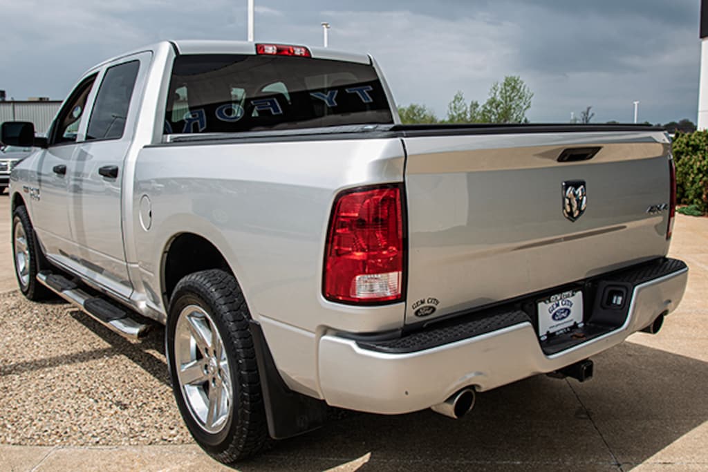 Local Trade, Bright Silver Metallic Clearcoat 2017 Ram 1500 Express 4WD 8-Speed Automatic HEMI 5.7L V8 Multi Displacement VVT, 1-Yr SiriusXM Radio Service, 3.21 Rear Axle Ratio, 4-Wheel Disc Brakes, 40/20/40 Split Bench Seat, 5.0" Touchscreen Display, 6 Speakers, ABS brakes, Active Grille Shutters, Add Class IV Receiver Hitch, Air Conditioning, AM/FM radio, Audio Jack Input for Mobile Devices, Black Exterior Mirrors, Black Rotary Shifter, Body Color Front Fascia, Body Color Grille, Body Color Rear Bumper w/Step Pads, Brake assist, Carpet Floor Covering, Center Hub, Charge Only Remote USB Port, Cloth 40/20/40 Bench Seat, Delay-off headlights, Delete Spray In Bedliner, Driver door bin, Dual front impact airbags, Dual front side impact airbags, Dual Rear Exhaust w/Bright Tips, Electronic Shift, Electronic Stability Control, Express Value Package, Exterior Mirrors w/Heating Element, Fog Lamps, For More Info, Call 800-643-2112, Front & Rear Floor Mats, Front anti-roll bar, Front Armrest w/3 Cupholders, Front Center Armrest, Front wheel independent suspension, Fully automatic headlights, GPS Antenna Input, Heated door mirrors, Heavy Duty Vinyl 40/20/40 Split Bench Seat, Integrated Voice Command w/Bluetooth, Low tire pressure warning, Manufacturer's Statement of Origin, Media Hub (USB, AUX), No Satellite Coverage w/AK/HI/PR/VI, Occupant sensing airbag, Overhead airbag, Overhead Console, Passenger door bin, Power door mirrors, Power steering, Power windows, Quick Order Package 22J Express, Quick Order Package 26J Express, Radio data system, Radio: Uconnect 3 w/5" Display, Radio: Uconnect 3.0, Ram 1500 Express, Rear anti-roll bar, Rear Folding Seat, Rear seat center armrest, Rear step bumper, Remote Keyless Entry w/All-Secure, Remote USB Port, SIRIUSXM Satellite Radio, Speed control, Storage Tray, Tachometer, Temperature & Compass Gauge, Tilt steering wheel, Tip Start, Traction control, Variably intermittent wipers, Voltmeter, Wheels: 20" x 9" Aluminum Chrome Clad, Soft Tonneau Cover.