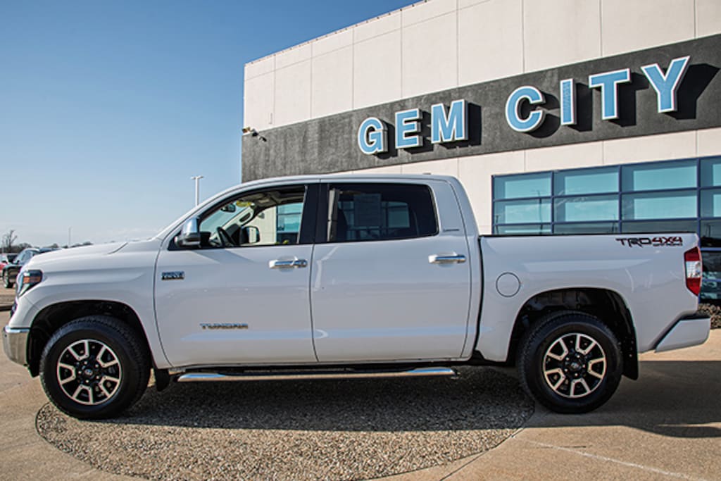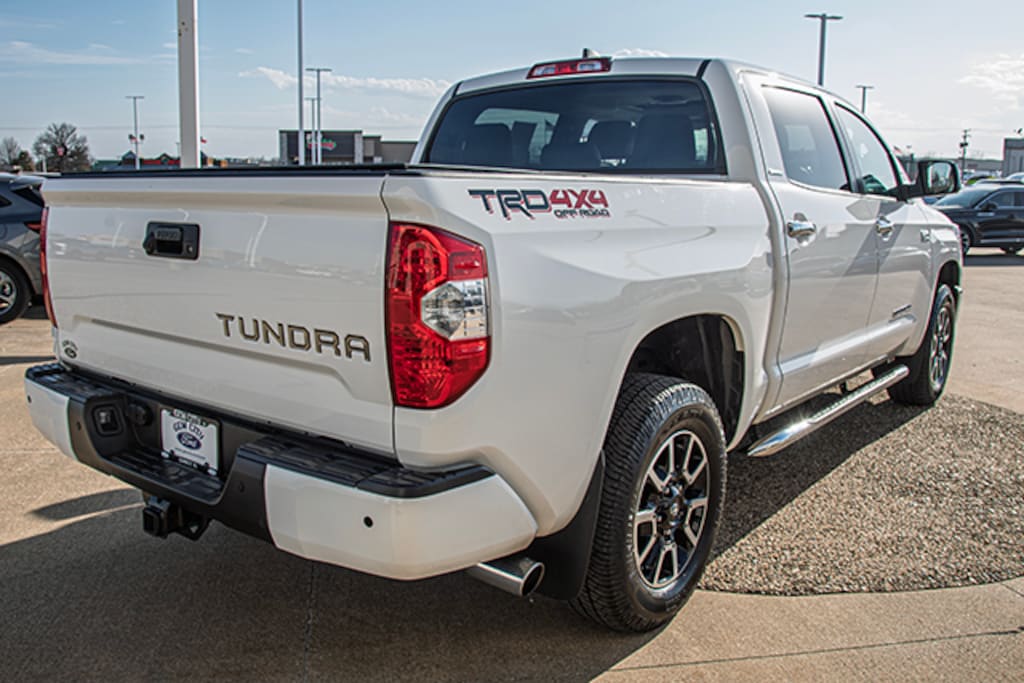 Local Trade, Super White 2020 Toyota Tundra Limited 4WD 6-Speed Automatic Electronic i-Force 5.7L V8 DOHC 32V LEV, 4WD, Black w/Leather Seat Trim w/TRD Off-Road Package, 4-Wheel Disc Brakes, 4.30 Axle Ratio, 9 Speakers, ABS brakes, Air Conditioning, Alloy wheels, AM/FM radio: SiriusXM, Anti-Theft Immobilizer w/Alarm, Apple CarPlay/Android Auto, Auto High-beam Headlights, Auto-dimming Rear-View mirror, Automatic temperature control, Bedside TRD Off Road Decal, Blind Spot Monitor w/Rear Cross Traffic Alert, Brake assist, Color-Keyed Rear Bumper, Compass, Delay-off headlights, Driver door bin, Driver vanity mirror, Dual front impact airbags, Dual front side impact airbags, Electronic Stability Control, Emergency communication system: Safety Connect with 1-year trial, Exterior Parking Camera Rear, Front & Rear Clearance Backup Sonar, Front anti-roll bar, Front Bucket Seats, Front Center Armrest, Front dual zone A/C, Front fog lights, Front reading lights, Front wheel independent suspension, Fully automatic headlights, Garage door transmitter: HomeLink, Heated door mirrors, Heated Front Bucket Seats, Heated front seats, Illuminated entry, Knee airbag, Leather Seat Trim (LB), Leather Seat Trim w/TRD Off-Road Package, LED Headlights w/Black Sport Trim, Limited Premium Package, Low tire pressure warning, Navigation System, Occupant sensing airbag, Outside temperature display, Overhead airbag, Overhead console, Panic alarm, Passenger door bin, Passenger vanity mirror, Power door mirrors, Power driver seat, Power passenger seat, Power steering, Power Tilt & Slide Moonroof w/Sliding Sunshade, Power windows, Power Windows w/Front Auto Up/Down, Radio data system, Radio: Premium Audio w/Dynamic Navigation, Radio: Premium JBL Audio w/Dynamic Navigation, Rear reading lights, Rear seat center armrest, Rear step bumper, Rear window defroster, Remote Connect, Remote keyless entry, Safety Connect, Security system, Service Connect, SiriusXM Radio, Speed control, Speed-sensing steering, Split folding rear seat, Steering wheel mounted audio controls, Tachometer, Telescoping steering wheel, Tilt steering wheel, Traction control, Trail-Tuned Bilstein Shock Absorbers, TRD Off Road Floor Mats, TRD Off-Road Package, Trip computer, Variably intermittent wipers, Voltmeter, Wheels: 18" Split 5-Spoke TRD Off Road Alloy, 3 Piece Tonneau Cover, 4WD, Black w/Leather Seat Trim w/TRD Off-Road Package.